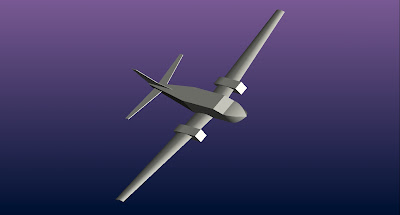 Below is a wing design, which including an engine housing and the airfoil. The airfoil design is key to the lift of the plane. It was composed of serveral crossectional plates to define the form of the airfoil, and the poles of aluminum and carbonate fiber materials to maintain the strength of the wing.